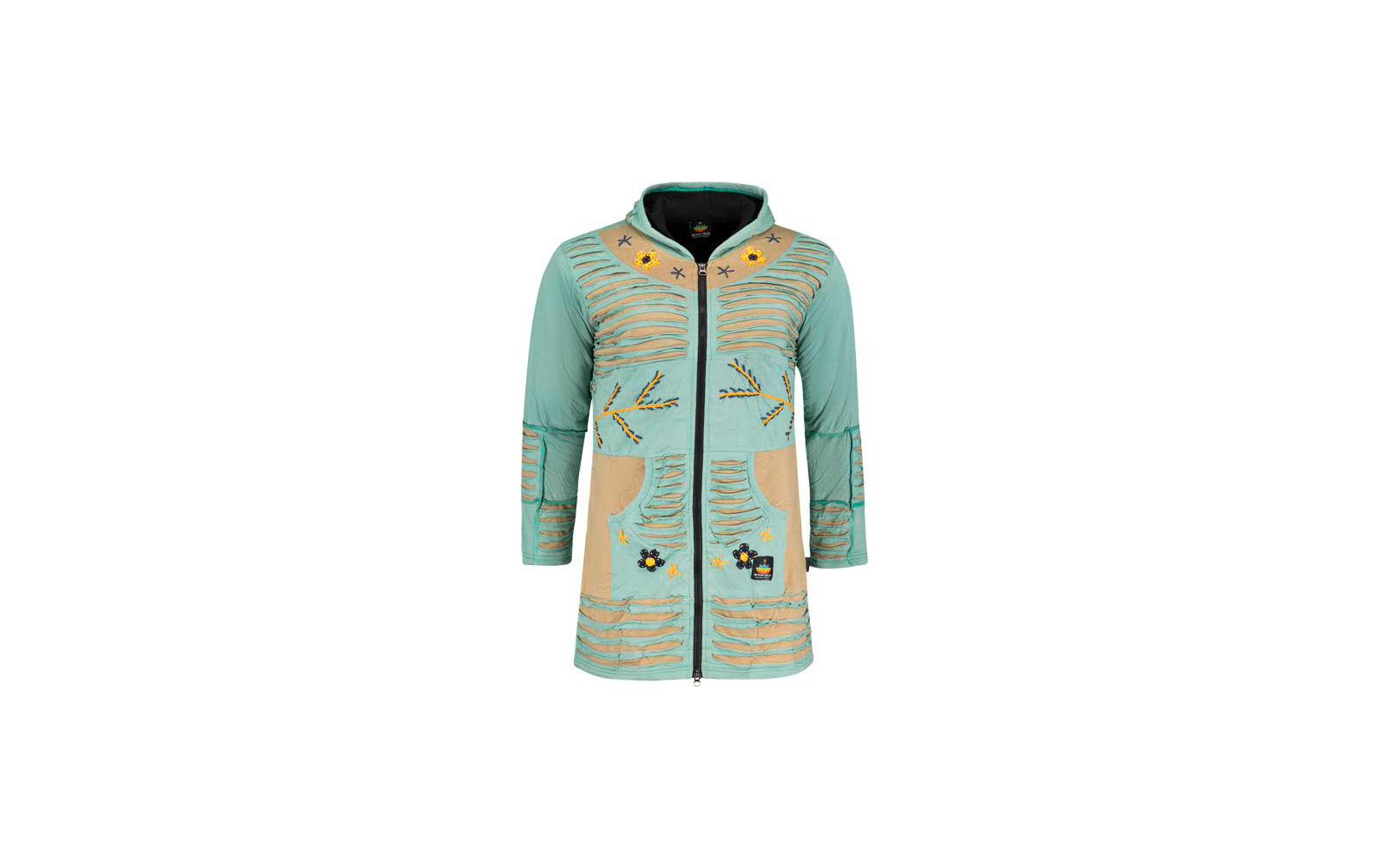El abrigo de patchwork para mujer Ankerglutstern es un elegante abrigo de patchwork confeccionado a mano con un alto nivel de calidad. Con sus modernas costuras abiertas y sus motivos decorativos de flores y hojas, este abrigo marca tendencia. Dispone de una práctica cremallera bidireccional, capucha fija y cómodos bolsillos con aberturas. Un suave forro polar garantiza un agradable calor, mientras que el corte ligero y femenino realza la silueta. El logotipo de la marca Ankerglut en la manga izquierda redondea el diseño.