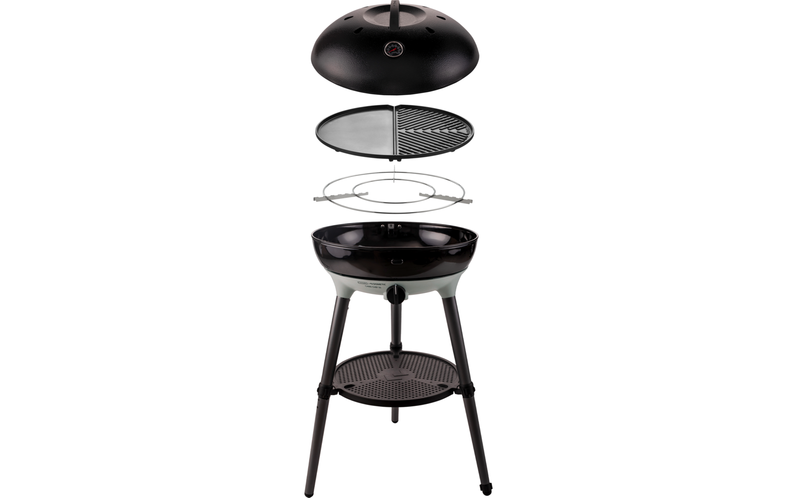 Con la Carri Chef 50 BBQ/Plancha, podrá cocinar al aire libre con más flexibilidad que nunca. Ya sea para asar, asar a la parrilla o estofar, la gran superficie de asado con un diámetro de 46 cm ofrece espacio suficiente para una gran variedad de platos. Gracias a las patas desmontables, la práctica tapa con termómetro y la placa combinada plancha/parrilla, la barbacoa es un auténtico todoterreno para el camping, el jardín o cuando se viaja.
