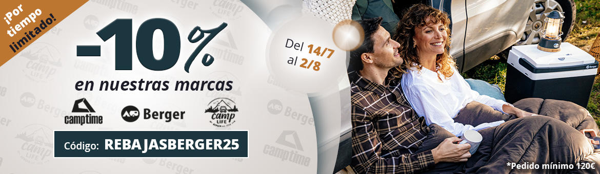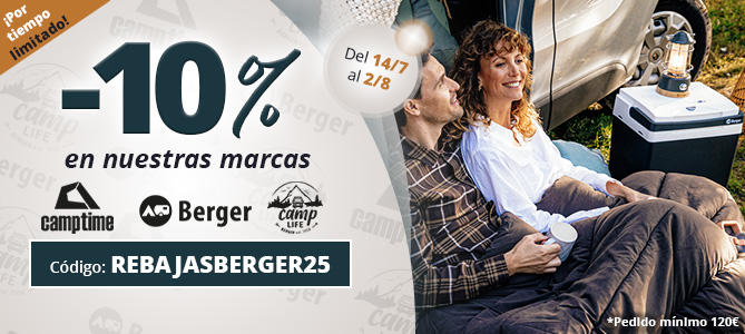 ¡Hemos ampliado una semana más el descuento en nuestras marcas propias! Aprovecha un 10% extra en nuestras tres marcas: Camptime, Camplife y, por supuesto, Berger.